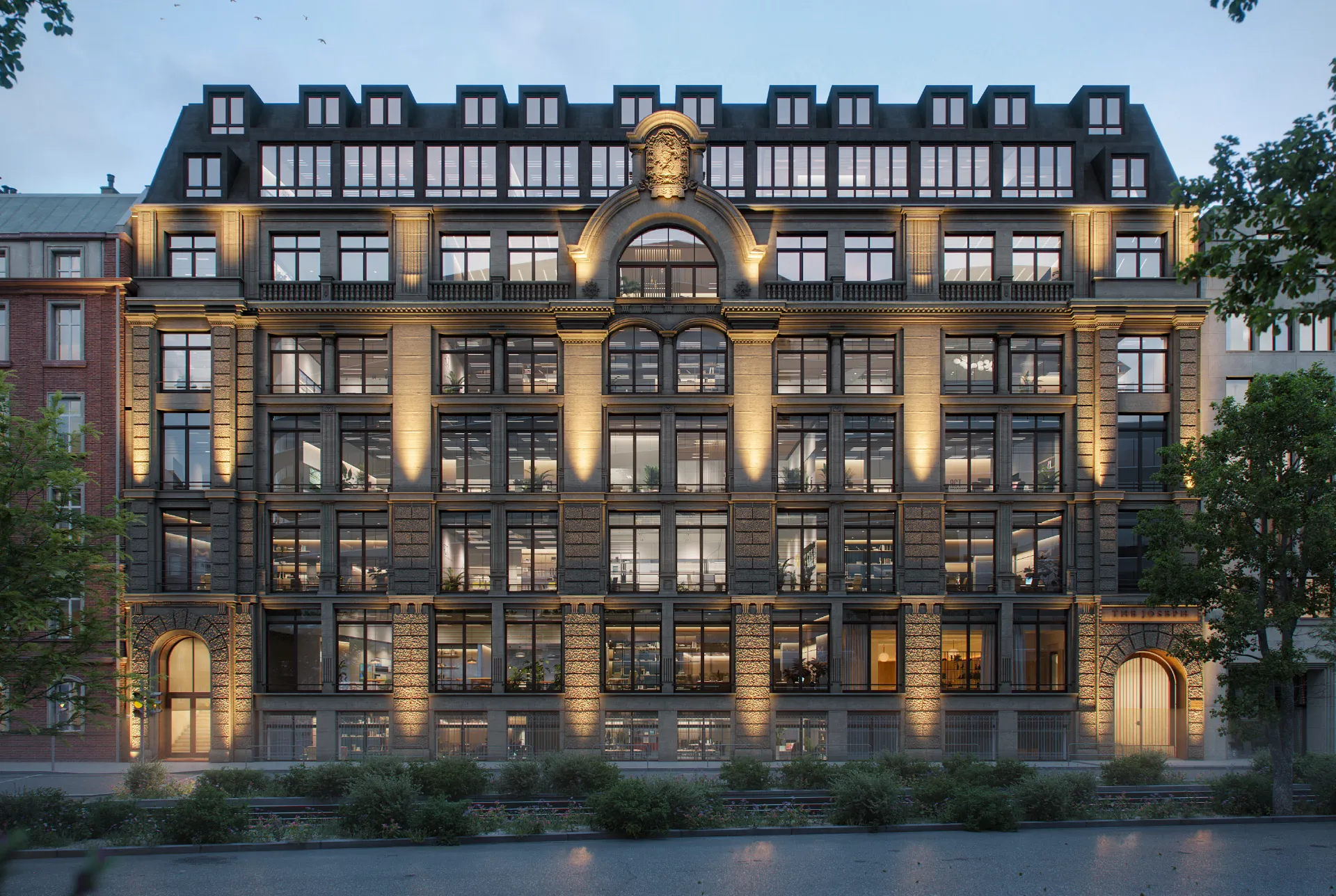 Die aufwendig restaurierte Neorenaissance-Fassade erzählt von einer reichen Geschichte, während die modernen Boutique-Büros im Inneren neue Perspektiven eröffnen.